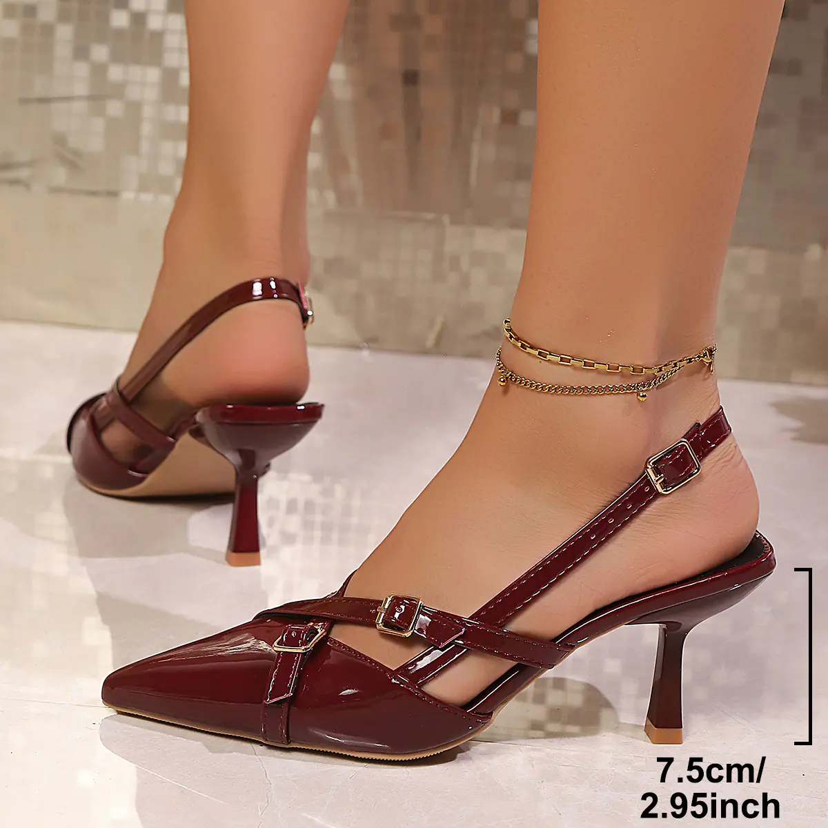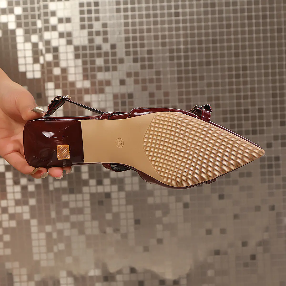 Flat slippers2025法式气质包头凉鞋女皮带扣浅口高跟鞋尖头细跟后空单鞋