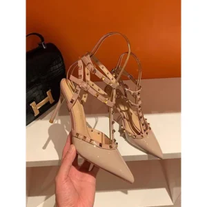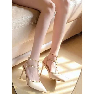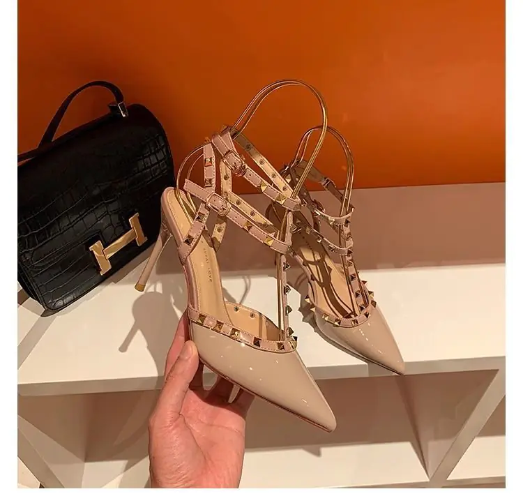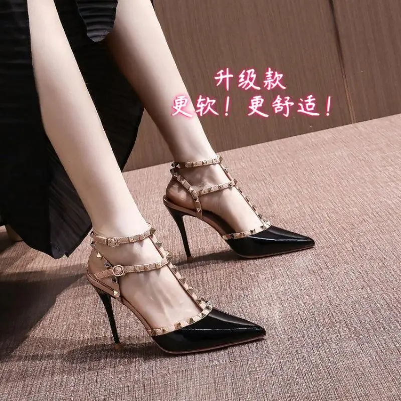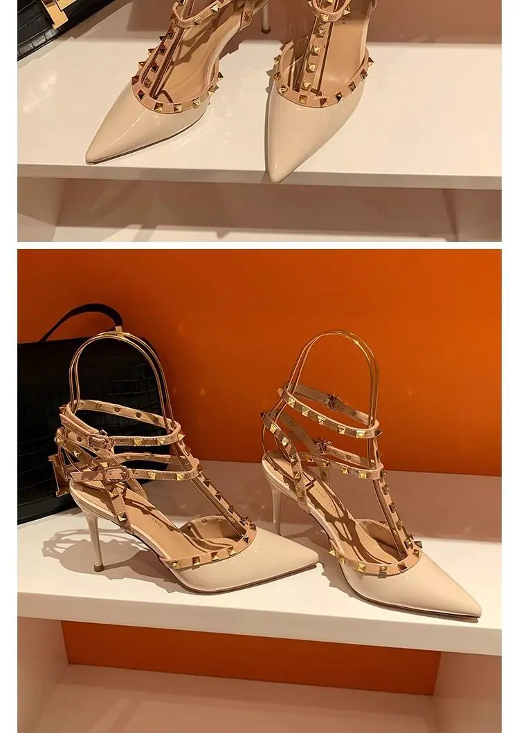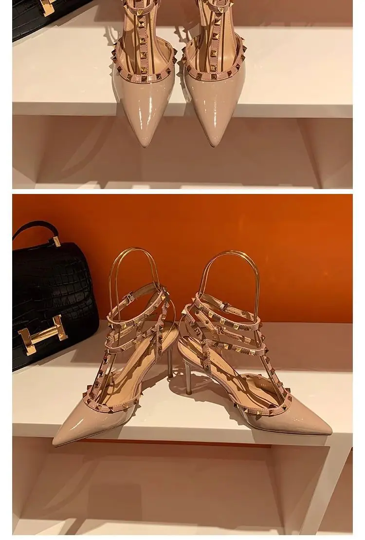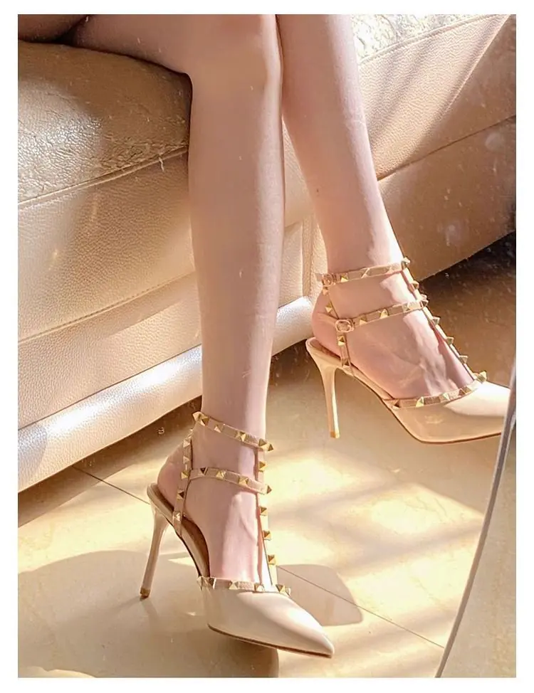 香港铆钉高跟鞋女2025年夏季新款尖头细跟白色柳丁不累脚凉鞋单鞋