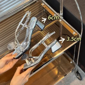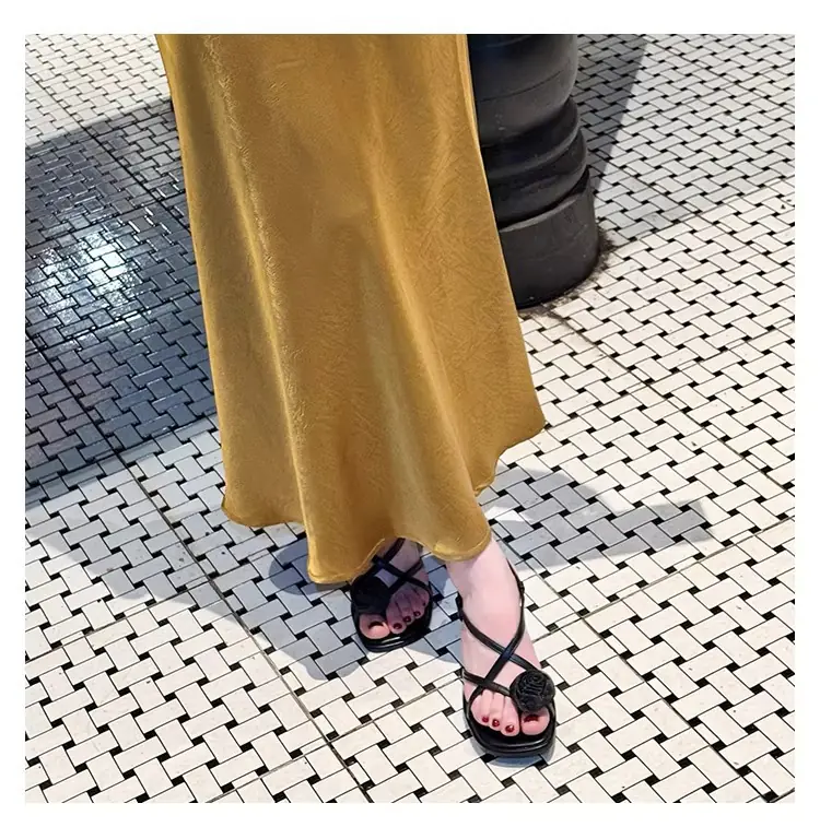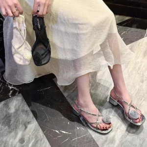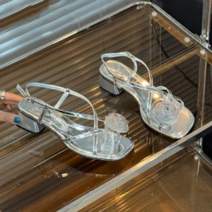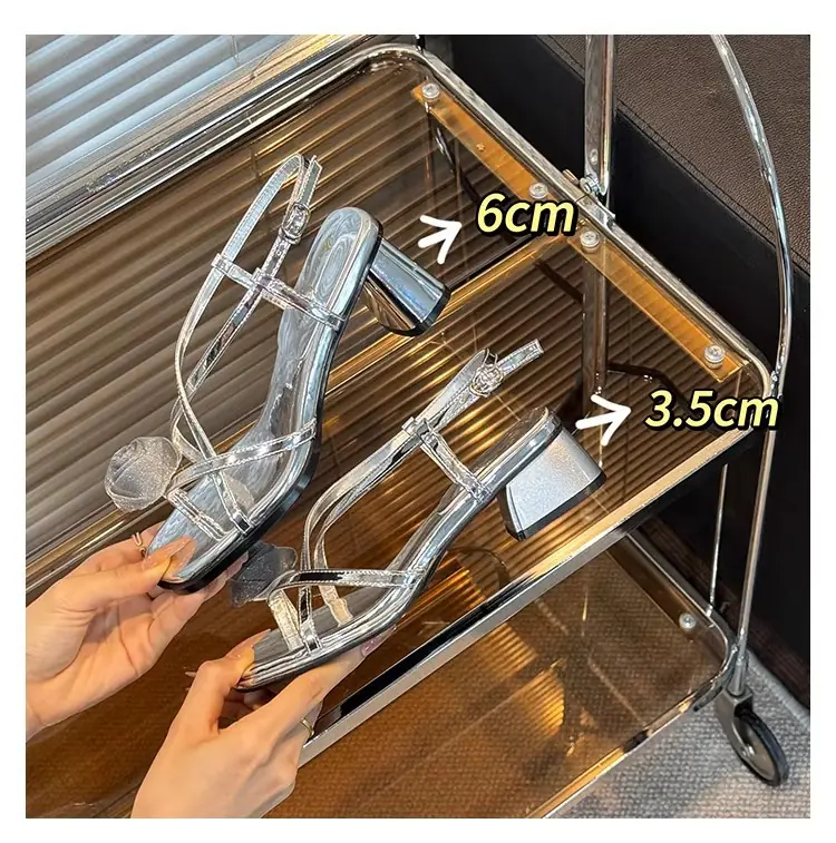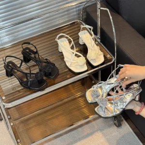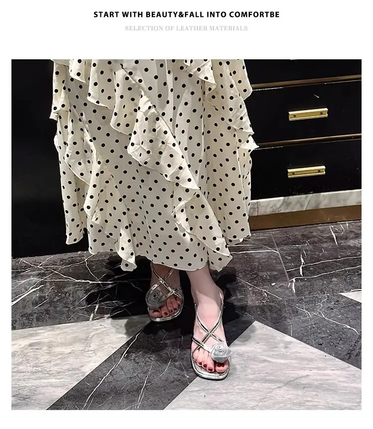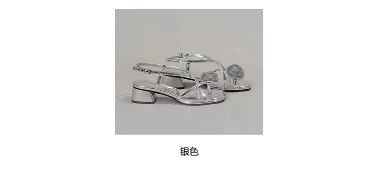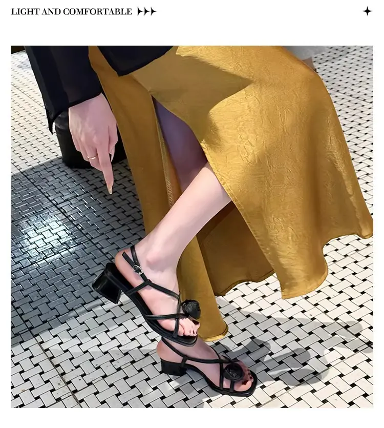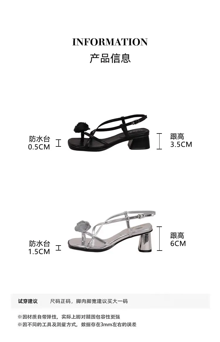 Fairy-Style Rose Flower Toe-Cover Sandals for Women, 2025 Summer New Arrival Chunky Heel Silver Sandals to Match with Dresses, High-Heeled Roman Sandals