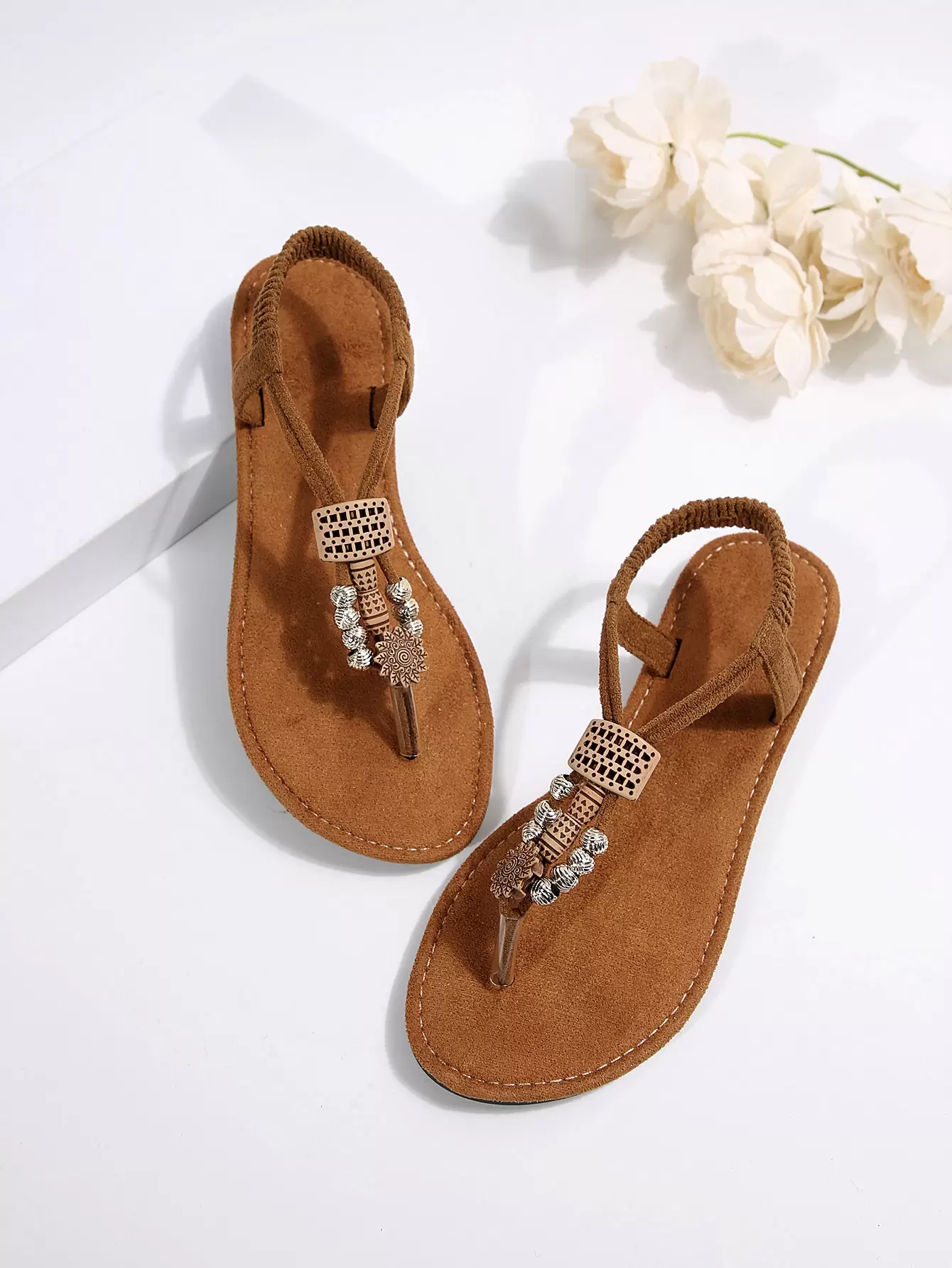 Women’s Ethnic-Style Flat Thong Sandals with Bead and Flower Design